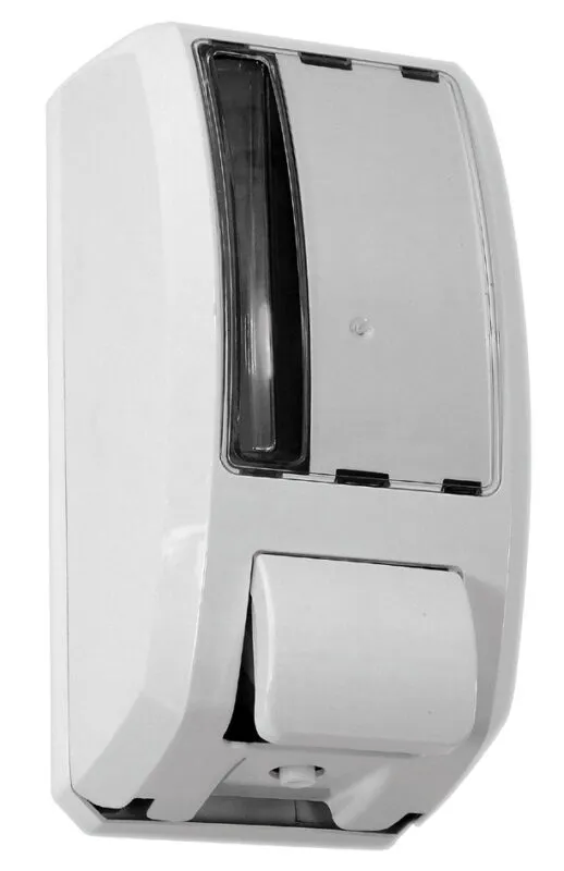 Fundo e botão do dispenser são na cor branca, oferecendo um visual clean e adaptável a diversos ambientes.