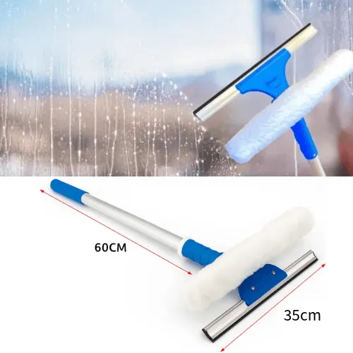 Transforme a limpeza de vidros em tarefas ágeis, eficientes e com resultado profissional. O Combinado 2 em 1 é um equipamento inovador da Bralimpia, que une dois processos em um só: um lavador com luva de acrílico + um limpador com guia metálica e lâmina de borracha. Ideal para janelas, fachadas, automóveis, escritórios ou áreas envidraçadas em altura.